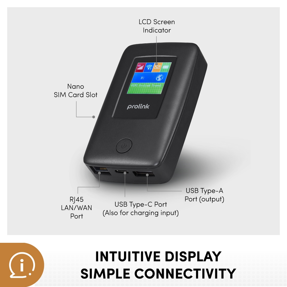 [25 hour Portable Mi-Fi | Power bank] Prolink DL-7203E 4G LTE Mobile WiFi with LCD display with RJ45 LAN port/ Powerbank