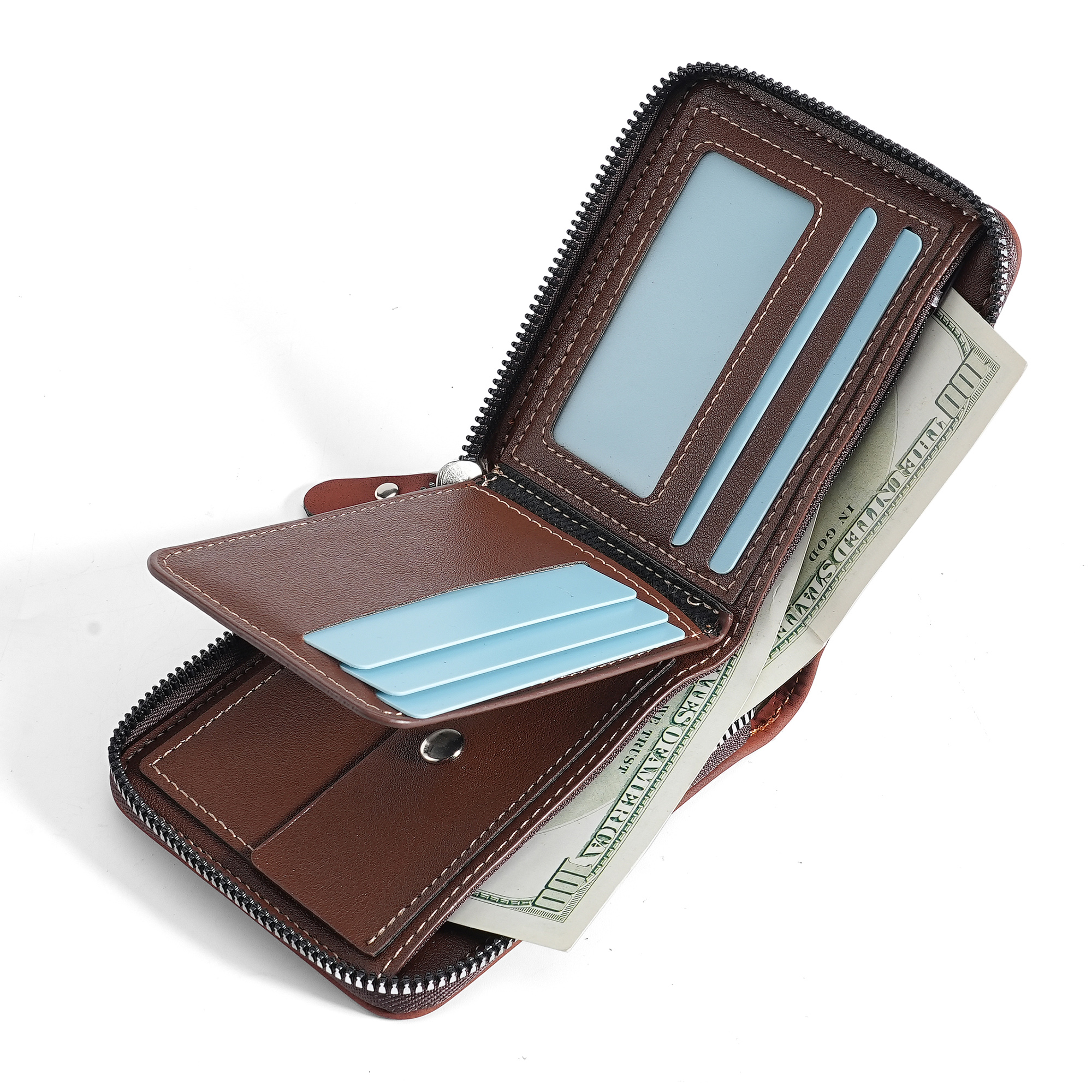 Men New Style Leather Zipper Short Wallet Multifunctional Coin Purse Multi-card ID Bag Card Holder