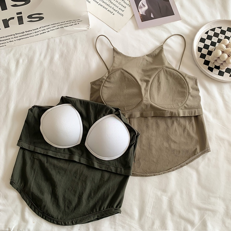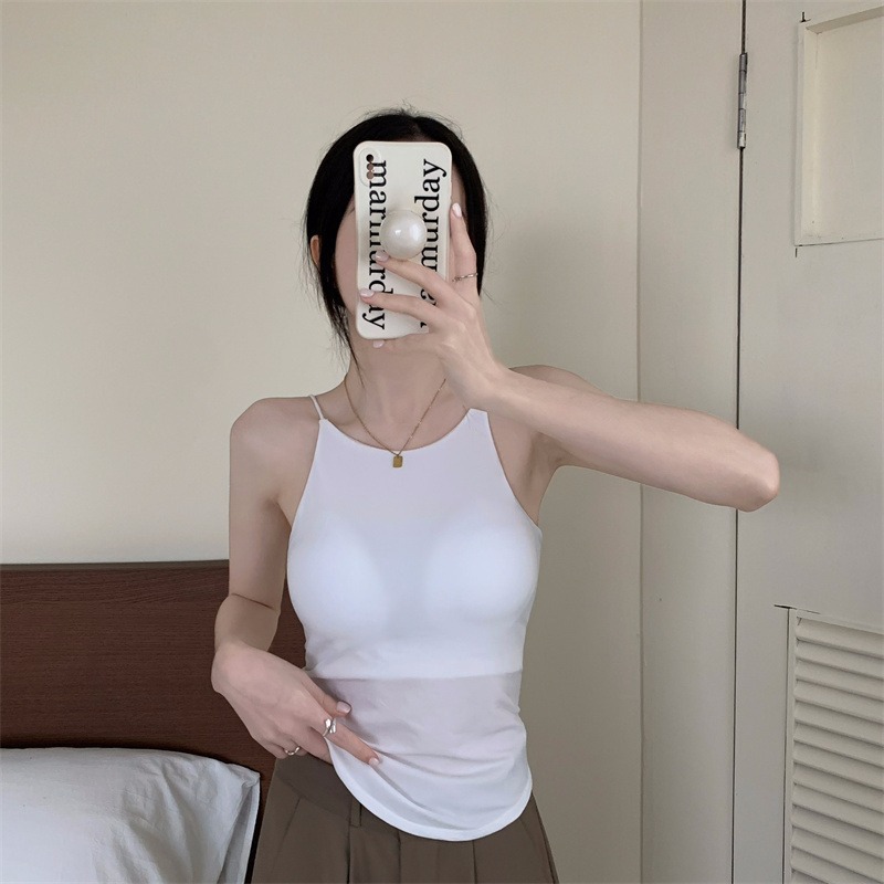 Women's summer with chest pad sleeveless halter vest tank top